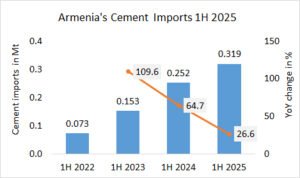 In the first 7 months in 2025, Argentina’s cement dispatch (local and exports) increased by +9.9% to 5.705 Mt, after 5.189 Mt in the same period last year and 7.249 Mt in the year before.