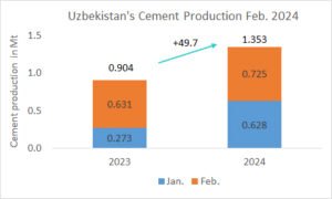 In the first 2 months of 2024, Armenia’s cement imports increased by a massive +81.3% to 0.0455 Mt, after 0.0251 Mt in the same period in 2023. While the imports still declined by -28.9% YoY in January, they saw a huge +150.6% YoY increase in February.