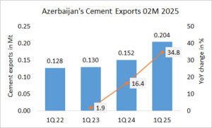 In the first 2 months of 2025, Armenia’s cement imports increased by +53.5% to 69.7 kt, after 45.4 kt in the same period last year and 25.1 kt in the year before.