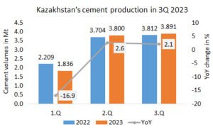 In Armenia, from January to October 0.965 Mt of cement have been produced. This is an increase by +20% compared to 0.804 Mt in the same period last year. However, in October the production declined by -15.4% YoY to 0.082 Mt, after 0.097 Mt in Oct. 2022.