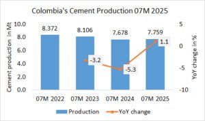 In the first 6 months in 2025, Bolivia’s cement production declined by -1.6% to 1.918 Mt, after 1.949 Mt in the last year and 1.834 Mt in the year before.