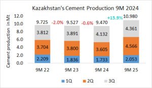 In the first 8 months in 2025, Bolivia’s cement production increased by +0.1% to 2.642 Mt, after 2.638 Mt in the last year and 2.528 Mt in the year before, despite the economic and political crisis in the country.