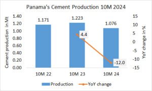 In the first 10 months in 2024, Bolivia’s cement sales increased by +2.4% to 3.334 Mt, after 3.255 Mt in the same period last year and 3.156 Mt in the year before.