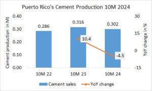 In the first 10 months in 2024, Brazil’s cement dispatch increased by +4.3% to 54.667 Mt, after 52.394 Mt in the same period last year.