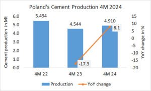 In the first for months of 2024, Georgia’s cement imports increased by +30.1% to 0.318 Mt after 0.245 Mt in the same period last year. Alone, 0.118 Mt of the imports this year, were recorded in April.