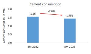 In Spain in the first 8 month of 2023, the cement production almost has been unchanged when compared to 2022. While from January to August 2022 in Spain 12.390 Mt of cement have been produced, in the same period in 2023 the volume has been 12.897 Mt. However, in 1.Q 2023 there still has been a +6.3% increase compared to 2022.