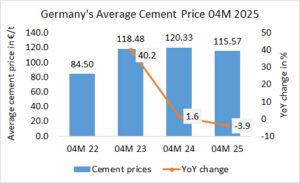 In the first 4 months in 2025, Chile’s cement dispatch declined by -1.6% to 1.808 Mt, after 1.838 Mt in the same period last year and 1.919 Mt in the year before.