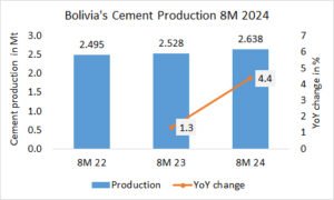 In the first 8 months of 2023, Chile’s cement dispatch declined by -6.8% to 3.296 Mt, after 3.537 Mt in the same period last year and 4.003 Mt in the year before.