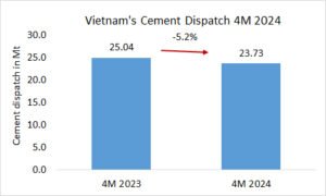 In the first 5 months of 2024, China’s cement production declined by -10.9% to 687.27 Mt, after 771.41 Mt in the same period last year and 783.38 Mt in the year before.