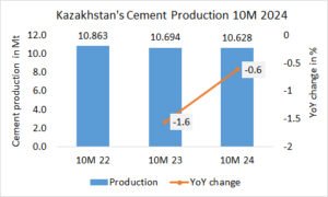 In the first 10 months in 2024, China’s cement production declined by -12.0% to 1509.41 Mt, after 1715.19 Mt in the same period last year and 1771.68 Mt in the year before.