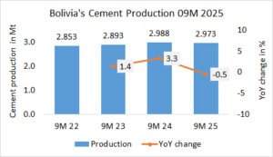 In the first 10 months in 2025, China’s cement production decreased by -6.7% to 1399.85 Mt, after 1501.16 Mt in the same period last year and 1715.19 Mt in the year before.