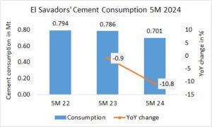 In the first 7 months of 2024, Colombia’s cement exports declined by -1.6% to 0.745 Mt, after 0.757 Mt in the same period last year and 0.610 Mt in the year before.