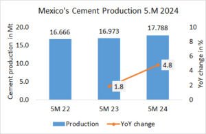 In the first half of 2024, Colombia’s cement production declined by -5.3% to 6.523 Mt, after 6.885 Mt in the same period last year and 7.171 Mt the year before.