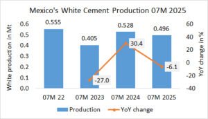 In the first half of 2025, El Salvador’s cement dispatch increased by +21.6% to 1.087 Mt, after 0.894 Mt in the same period last year and 1.003 Mt in the year before.