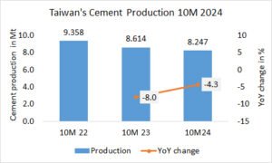 In the first 11 months in 2024, Georgia’s cement imports increased by +30.5% to 1.246 Mt, after 0.955 Mt in the same period last year and 0.766 Mt in the year before.