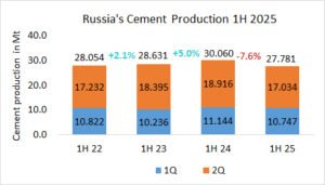In the first half of 2025, Georgia’s cement imports increased by +7.5% to 588.7 kt, after 547.7 kt in the same period last year and 441.7 kt in the year before.