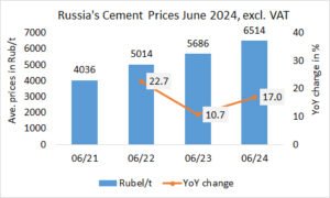 In the first half of 2024, Germany’s cement production declined by -10.8% to 11.385 Mt, after 12.769 Mt in the same period last year and 14.919 Mt in the year before.