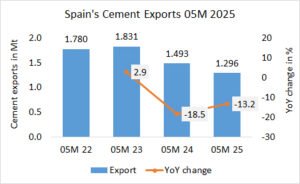 India’s UltraTech Cement was ranked 8th in the Global Sectoral Ranking of the S&P Dow Jones Sustainability World Index, 2025, and was the top ranked Indian cement company in the list. Accordingly, UltraTech has now ranked in the top 10 in the Construction Material sector for the 4th year in a row. The photo shows the company’s Baikunth solar park. After the recent installation of the 2nd grinding unit at Maihar, the cement capacity increased by 1.8 Mta and now stands at 186.76 Mta in India and 192.16 Mta on a consolidated base including foreign assets.