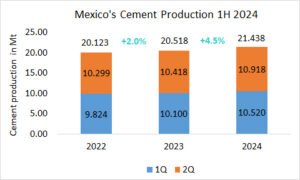 In the first half of 2024, Indonesia’s cement consumption increased by +2.2% to 28.018 Mt, after 27.420 Mt in the sane period last year and 28.838 Mt in the year before.