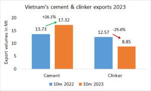 In Indonesia in the 3.Q 2023, the cement consumption significantly improved by +6.8% to 17.881 Mt, after 16.738 Mt in the 3Q. 2022. The accumulated cement consumption in the first 9 month of 2023 is now 45.301 Mt, which is still a slight -0.6% YoY decline from 45.576 Mt January to September 2022.