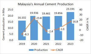 In Indonesia, in the period from January to October 2023, the accumulated cement consumption returned to +1.4% YoY growth. 51.608 Mt have been consumed after 50.905 Mt in the same period 2022. In October 2923 the consumption even increased by +18.3% YoY to 6.305 Mt.
