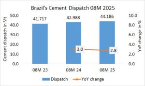 In the first 7 months in 2025, Italy’s cement production increased by +0.7% to 11.386 Mt, after 11.302 Mt in the same period last year and 11.466 Mt in the year before.