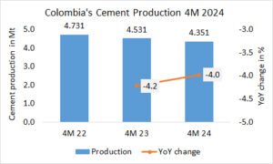 In the first 4 months of 2024, Japan’s cement production declined by -3.2% to 14.929 Mt, after 15.416 Mt in the same period last year, however in March-April this year the cement production is on par with the production in March-April last year.