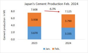 In the first two month of 2024, Japan’s cement exports significantly recovered by +4.8% to 1.053 Mt, after 1.005 Mt in the same period last year. February even saw a +19.5% YoY exports growth, while the January exports still declined by -8.5% YoY.