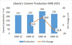 In the first 4 months in 2025, Kenya’s cement production increased by +15.4% to 3.211 Mt, after 2.783 Mt in the same period last year and 3.075 Mt in the year before.