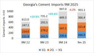 In 2024, the cement production in Kyrgyzstan increased by +4.3% to 3.099 Mta, after 2.970 Mta in 2023 and 2.670 Mta in the year before. The cement plants run almost under full capacity.