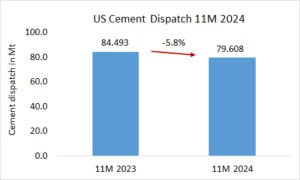 The annual cement production in Malaysia increased by +17.2% to 27.187 Mta, after 23.190 Mta in the last year and 19.856 Mta in 2022.