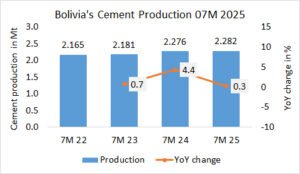 In the first 7 months in 2025, Malaysia’s cement production increased by +10.5% to 17.426 Mt, after 15.766 Mt in the same period last year and 13.670 Mt in the year before.