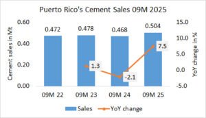 In the first 10 months in 2025, Mexico’s cement production (of integrated plants) decreased by -9.7%% to 32.205 Mt, after 35.661 Mt in the same period last year and 34.595 Mt in the year before.