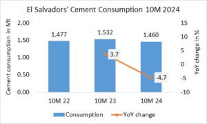 In the first 10 months in 2024, Mexico’s cement production (integrated plants) increased by +3.1% to 35.661Mt, after 34.597 Mt in the same period last year and 33.990 Mt in the year before.
