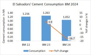 In the first 8 months in 2024, Mexico’s cement production from integrated plants increased by +4.4% to 28.840 Mt, after 27.632 Mt in the same period last year and 27.201 Mt in the year before.