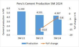In the first 4 months of 2024, Mexico’s cement production (excl. grinding units) increased by +5.1% to 14.124 Mt, after 13.445 Mt same period last year and 13.295 Mt the year before.