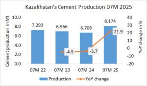 In the first half of 2025, Mexico’s white cement production decreased by -6.4%% to 0.425 Mt, after 0.454 Mt in the same period last year and 0.341 Mt in the year before.