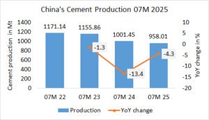 In the first 7 months in 2025, Pakistan’s cement consumption increased by +3.0% to 21.102 Mt, after 20.492 Mt in the same period last year and 22.766 Mt in the year before.