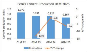 In the first 2 months of 2025, Pakistan’s cement dispatch increased by +12.1% to 7.490 Mt, after 6.679 Mt same period last year and 8.046 Mt the year before.