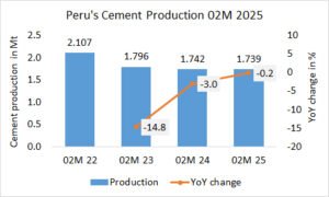 In the first quarter in 2025, Pakistan’s cement dispatch increased by +4.1 to 11.059 Mt, after 10.623 Mt in the same period last year and 11.841Mt in the year before.