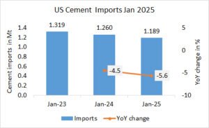In the first quarter (1.Q) in 2025, Pakistan’s cement exports increased by +18.9% to 1.663 Mt, after 1.399 Mt in the same period last year and 1.301 Mt in the year before.