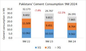 In the first 9 months of 2024, Pakistan’s cement exports increased by +22.1% to 5.593 Mt, after 4.580 Mt in the same period last year and 2.883 Mt in the year before.