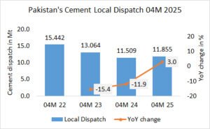In the first 4 months in 2025, Pakistan’s cement exports increased by +23.9% to 2.494 Mt, after 2.013 Mt in the same period last year and 1.722 Mt in the year before.