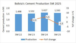 In the first half in 2025, Peru’s cement production increased by +0.9% to 5.300 Mt, after 5.251 Mt in the same period last year and 5.472 Mt in the year before.
