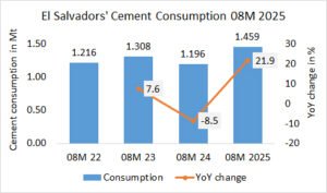 In the first 10 months in 2025, Peru’s cement production increased by +2.7% to 9.444 Mt, after 9.199 Mt in the same period last year and 9.487 Mt in the year before.