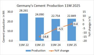 In the year 2025, Poland’s cement production decreased by -3.2% to 17.129 Mta, after 17.695 Mta in 2024 and 16.606 Mta in the 2023.