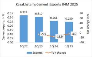 In the first 5 months in 2025, Russia’s cement production decreased by -6.5% to 21.686 Mt, after 23.198 Mt in the same period last year and 21.708 Mt in the year before.