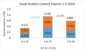 In the first half of 2024, Saudi Arabia’s cement dispatch declined by -1.8% to 23.436Mt, after 23.860 Mt in the same period last year and 25.281 Mt in the year before.