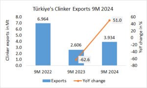In the first 9 months in 2024, Saudi Arabia’s cement exports declined by -17.5% to 1.357 Mt, after 1.645 Mt in the same period last year and 1.172 Mt in the year before.