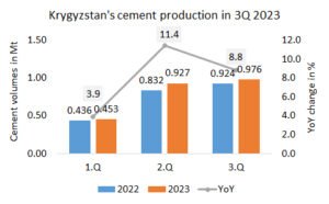 Saudi Arabia exported from January to November 2023 in total 1.990 Mt of cement. This is a YoY increase by +24.1% from 1.604 Mt the same period last year. However, these accumulated exports include only 0.133 Mt from November, while in that month in last year 0.239 Mt were exported, which corresponds to a -44.4% monthly decline in one year.